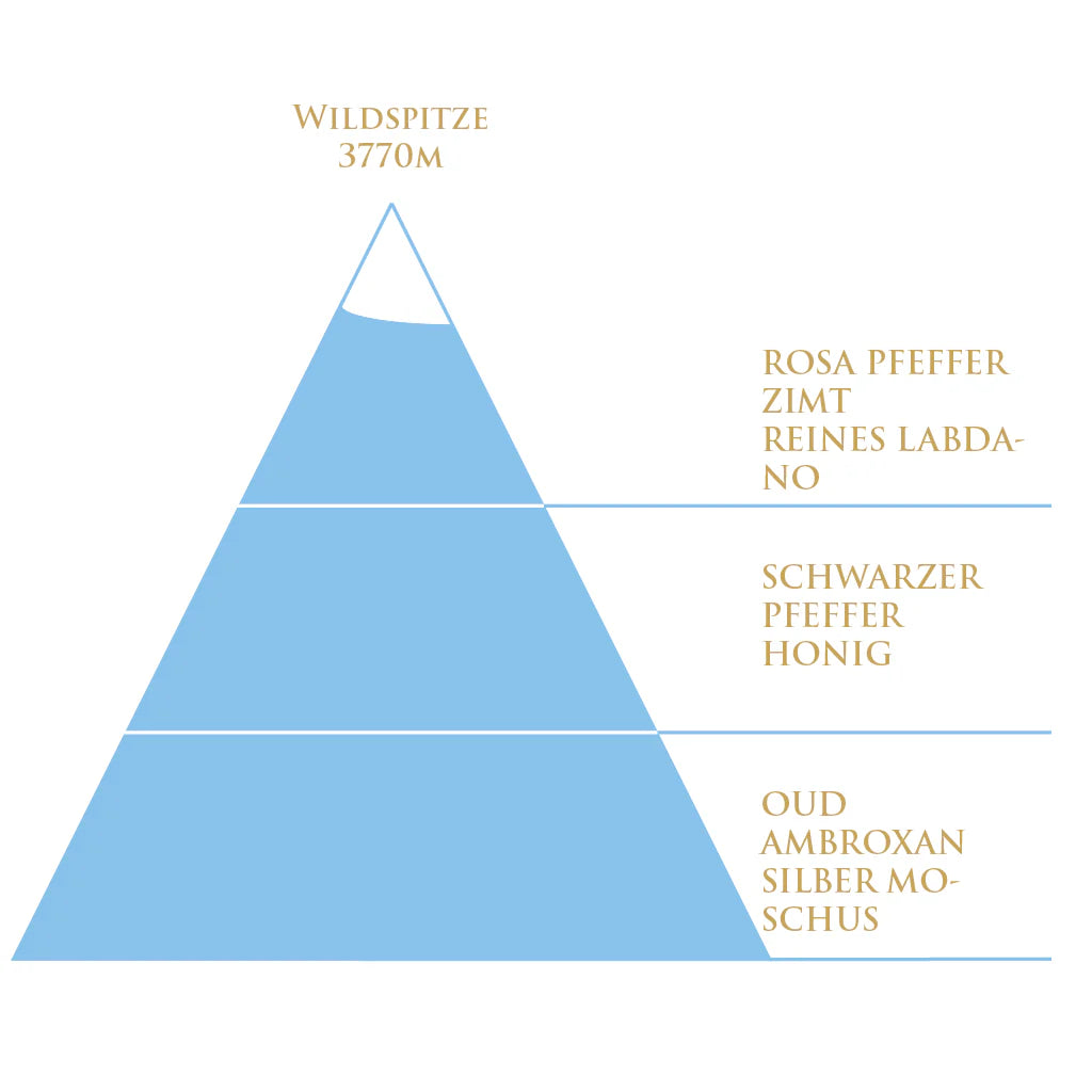 Lassen Sie sich von diesem Parfum in neue Höhen verzaubern. Er ist der höchste und kräftigste Duft unserer Serie und trägt als Namen die Seehöhe des höchsten Gipfels Tirols – der Wildspitze. Kräftige Noten von Pfeffer, Zimt, Honig, Oud, Ambroxan & Silber Moschus verschmelzen zu einem unglaublich intensiven und langanhaltendem Parfum, das Sie – einmal erlebt – aufgrund seiner Einzigartigkeit und starken Charakters nie mehr vergessen können.